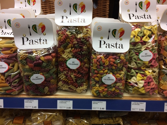 It's been a nice day, first we went shopping and when we came back we had a coffee, I read my magazine and after our son had eaten his breakfast we got read and went first to Holt where we all had an espresso in a cafe we had never been in before, it was nice. We then went on to Sheringham for fish and chips. After that we walked down to the sea ( it poured with rain) it was lovely, I am at my happiest when I am by the sea. I just love Bakers and Larners of Holt too. If I was rich I would do all my shopping there. I took a photo of some of their pasta. I bought a large pork pie there and H and I had half each for our tea. Son had a salad.